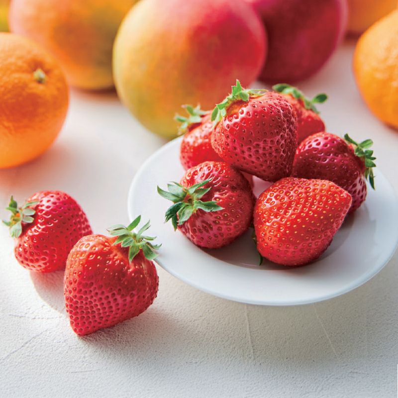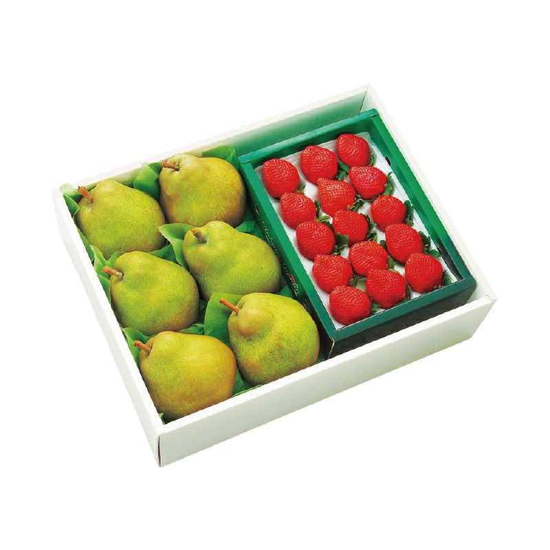 旬のあまおうをメインにとろけるようにまろやかなラ フランス、オレンジ、メロン。