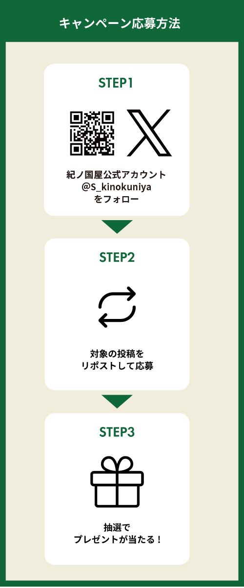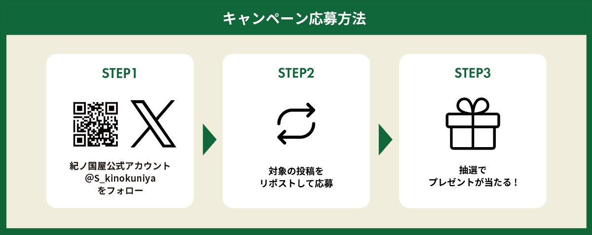 1. X (Twitter) アカウント「株式会社紀ノ國屋 (@S_kinokuniya) 」をフォロー。