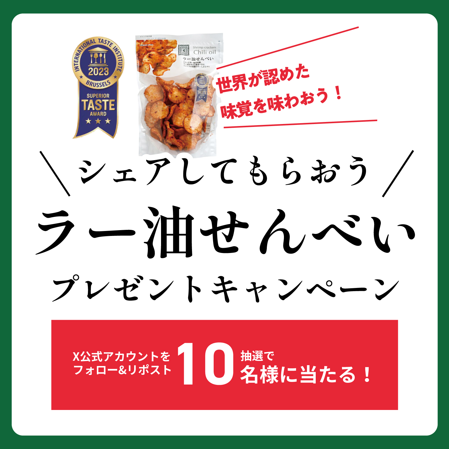 [A] 紀ノ国屋 公式オンラインストアでラー油せんべいをご購入:20名様[B] X (Twitter) のフォロー&リポスト:10名様